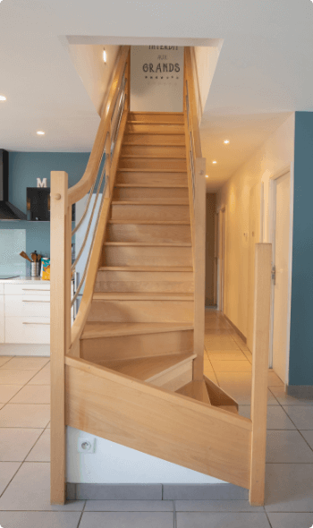 Chaque escalier est le fruit d’un savoir-faire artisanal. Nous utilisons du bois massif de qualité pour créer des escaliers sur mesure, alliant tradition et innovation. Nos artisans mettent leur passion et leur expertise au service de votre projet, garantissant un résultat à la fois esthétique et durable. Votre escalier devient une pièce maîtresse, façonnée par nos artisans pour votre intérieur.