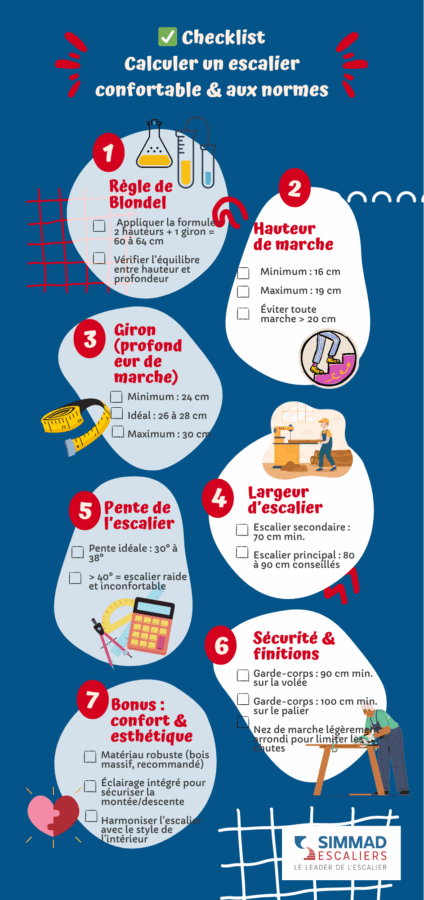 - Ergonomie & sécurité : comment calculer pas, giron et hauteur pour un escalier confortable et aux normes
