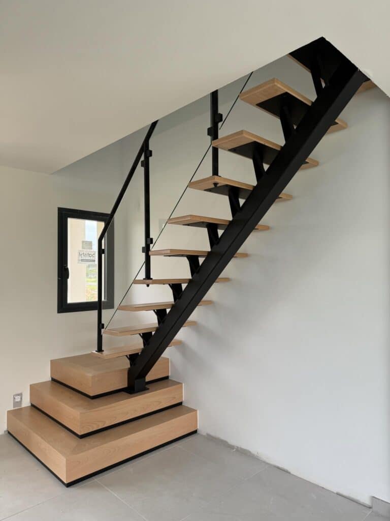 La différence se joue sur la proportion bois/métal, la finesse des lignes, la finition du métal et le style du garde-corps. L’objectif : un escalier cohérent avec votre intérieur (sols, menuiseries, verrière, mobilier).