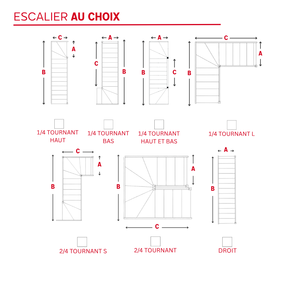 Voici notre guide général de prise de côtes pour choisir votre escalier. Nos équipes se tiennent à votre écoute si vous avez des questions 02 35 74 20 25